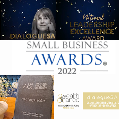 We were delighted to win three awards this year – one international and two national. The Wealth and Finance Consultancy award for Change Leadership Specialist of the Year, Top 20 small business in South Africa from the South African Small Business Chamber, and the Leadership Excellence award.